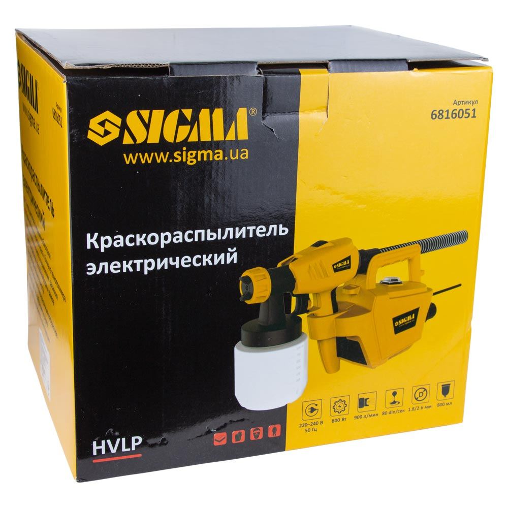 Фарборозпилювач електричний HVLP 800Вт Ø1.8/2.6мм 900мл/хв н/б 800мл SIGMA (6816051)