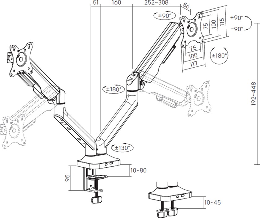 Кріплення настільне для двох моніторів OfficePro 17-35" White (MA442W)