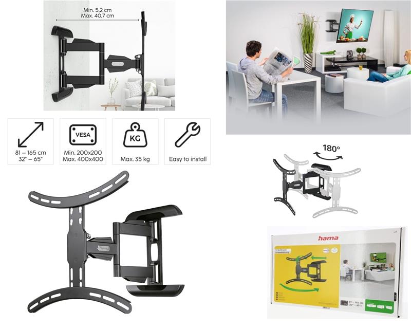 Кріплення ТВ поворотне Hama TV-WB, 32-65", чорний