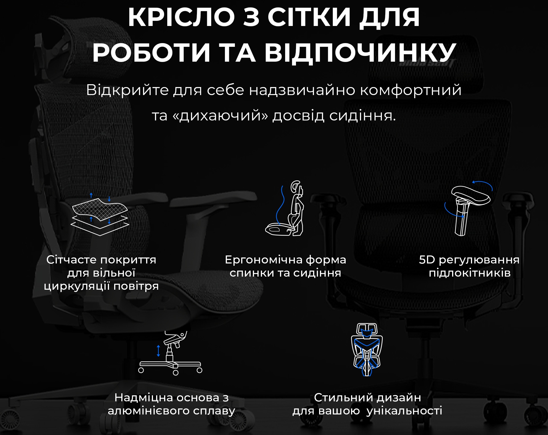 AndaSeat X-Air Pro — преміальне ергономічне сітчасте крісло, створене для забезпечення найвищого рівня комфорту та підтримки під час роботи чи гри