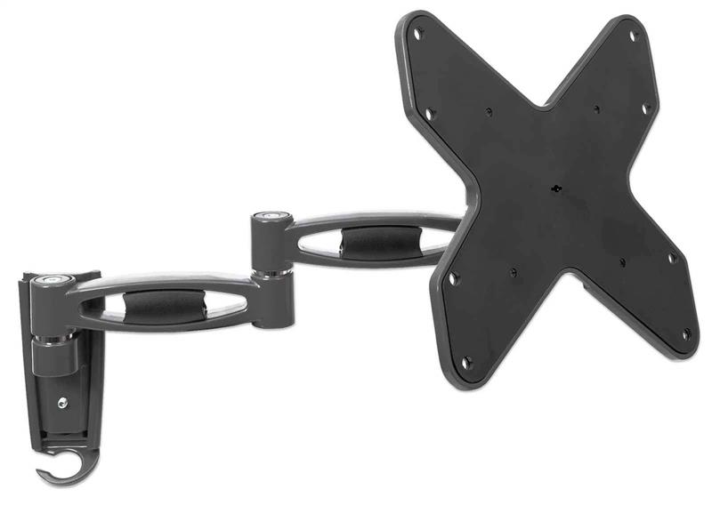 Надійно утримує один плоский телевізор. Оптимізація огляду за допомогою регулювання нахилу ±15° та повороту на 180°. Збільшує відстань до телевізора до 40 см (15,75 дюймів) від стіни. Міцна алюмінієва конструкція. Проста установка ідеально підходить для дому, офісу та комерційних додатків. Вбудована система управління кабелями та вбудований бульбашковий рівень. Відповідає стандартам VESA – підтримує телевізори від 23 до 42 дюймів та вагою до 20 кг (44 фунти).