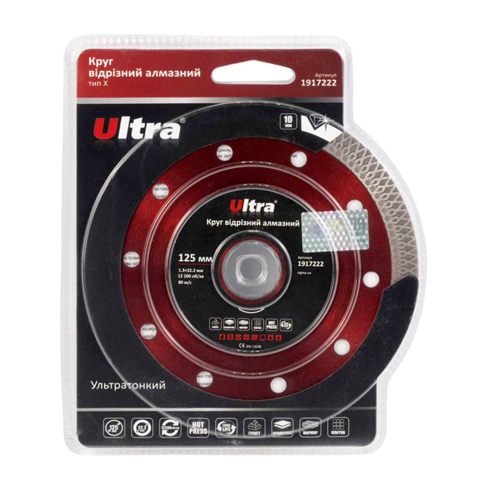 Коло відрізний алмазний тип Х Ø230×25.4 (22.2)мм ULTRA (1917262) призначене для різання потовщеного граніту та керамограніту, кахлю, плитки, мармуру. Корпус виготовлений із міцної сталі, здатної витримати значне механічне навантаження та високу температуру.