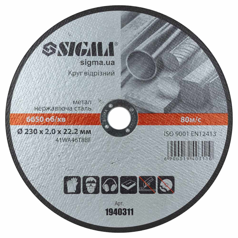 Коло відрізне по металу Ø230x2.0x22.2мм, 6650об/хв Sigma 1940311 призначене для різання виробів з металів та нержавіючої сталі, роботи з кузовною сталлю та іншими аналогічними матеріалами. Робочим інструментом під час роботи відрізного кола є кутова шліфувальна машина (УШМ, "болгарка").