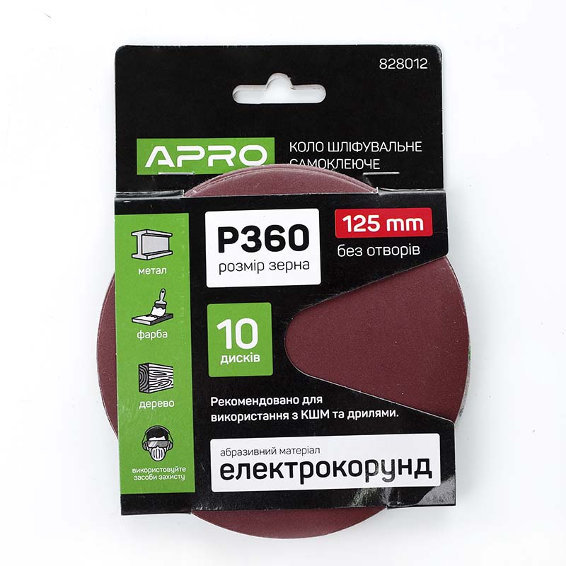 Коло шліфувальне без отворів (на липучці) ?125мм P360 (10шт) APRO
