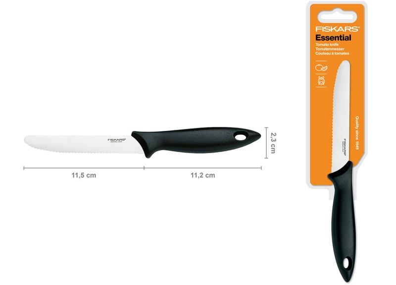 Кухонний ніж для томатів Fiskars Essential, 11.5см, нержавіюча сталь, пластик, чорний