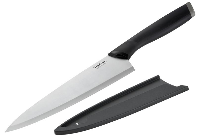 Кухонний ніж кухарський Tefal Comfort, 20см, з чохлом, нержавіюча сталь, пластик, чорний