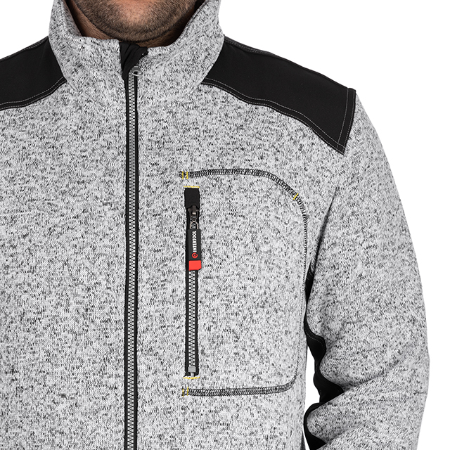 Виготовлена куртка зі 100% поліестеру, з міцно прошитими подвійними швами. Вона виконана методом в'язання, м'яка й тепла, зі щільністю полотна 270 г/м², забезпечує комфортне носіння куртки в будь-яку холодну погоду. Накладки чорного кольору на плечах та на задній частині рукавів гарантують високу зносостійкість одягу. Куртка відповідає європейському стандарту якості EN13688.