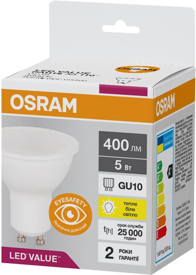Лампа OSRAM LED GU10 5Вт 3000K 400Лм PAR16 VALUE