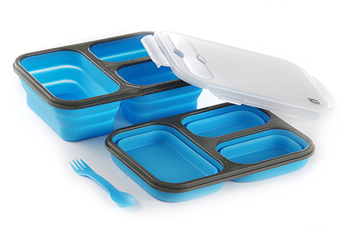 Ланчбокс складаний з кришкою-засувкою та ловилкою блакитний 350мл/350мл/650мл СИЛА