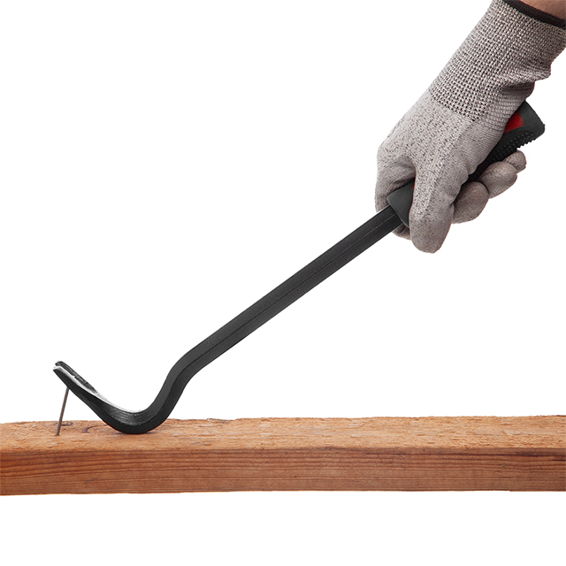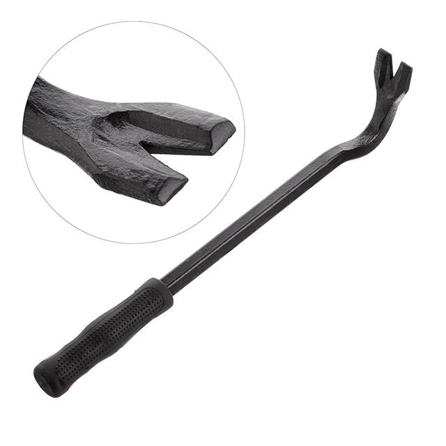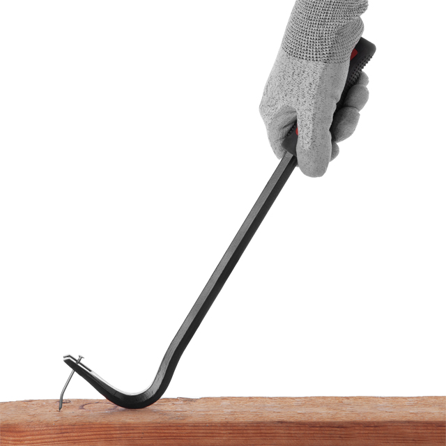 Виготовлений з високоміцної загартованої інструментальної сталі для виконання складних демонтажних робіт. Кутовий цвяходер створює опору з високим важелем для піддягання або підйому, а гострий кінець вклинюється у важкодоступні місця.