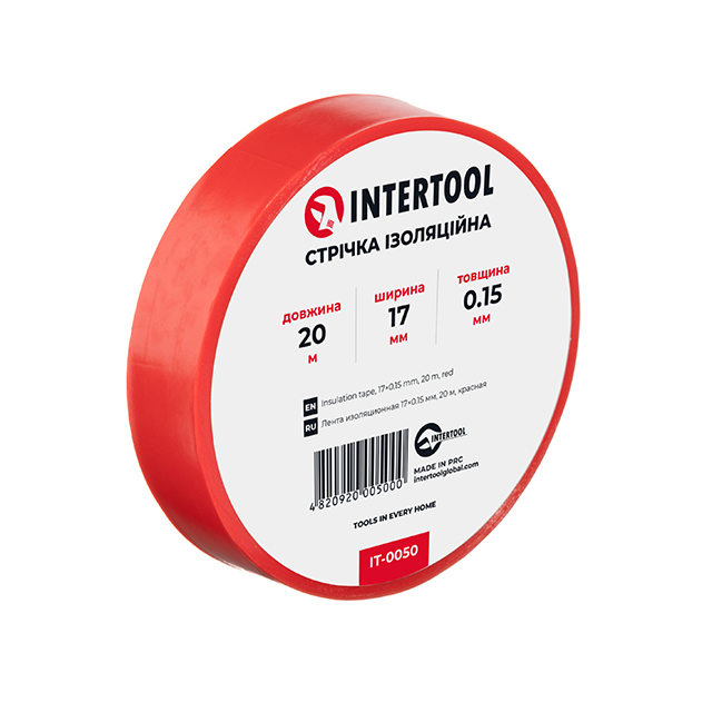 Стрічка ізоляційна червоного кольору, завдовжки 20 метрів, шириною 17 мм.