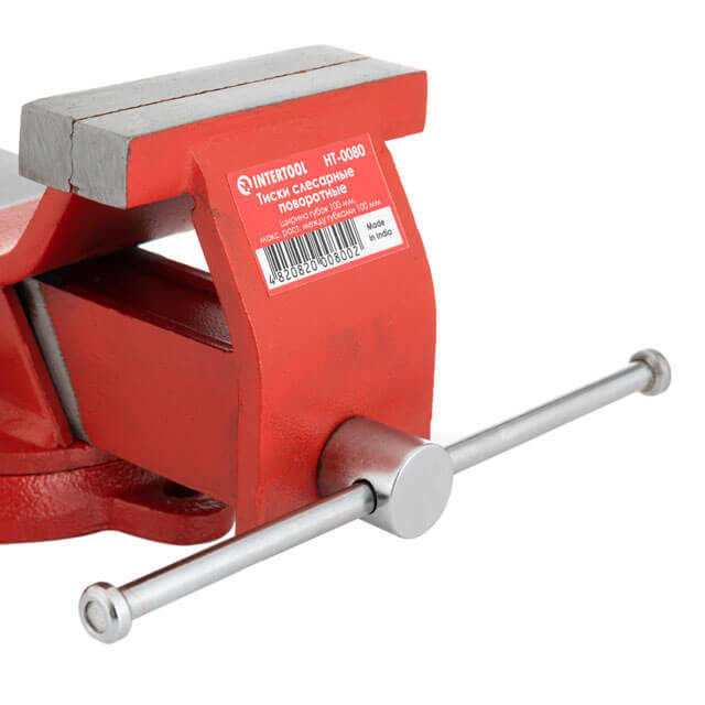 Лещата слюсарні INTERTOOL HT-0080 призначені для закріплення заготовок, деталей та предметів для подальшої обробки. Конструкція з металевим ковадлом розширює функціонал лещат та дозволяє виконувати невеликі ударні роботи над заготовкою. Поворотна база дає можливість повертати та нерухомо фіксувати деталь у діапазоні 360° навколо своєї осі для зручної роботи. Лещата можна встановити стаціонарно за допомогою отворів на основі.