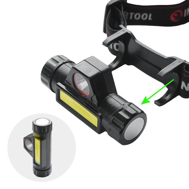 Ліхтар налобний акумуляторний, XPE + COB, 125 лм, магніт