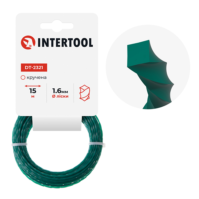 Волосінь для тримера чи мотокоси являє собою незамінний аксесуар для догляду за садом, газоном, присадибною ділянкою тощо. Ця волосінь має форму "кручений квадрат" і поставляється у зручному мотку, довжиною 15 метрів.