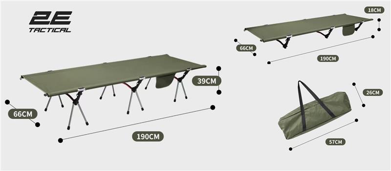 Ліжко складане 2E FB Lite з регулюванням висоти, 190х66х18-38см, 3кг, зелений (2E-TACFBL38-GN)