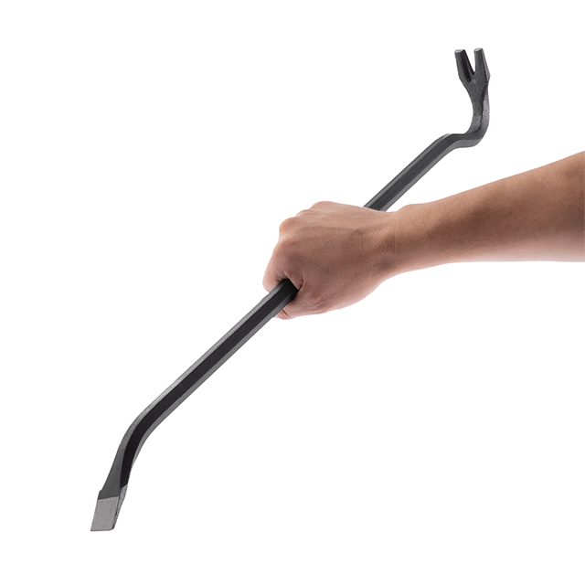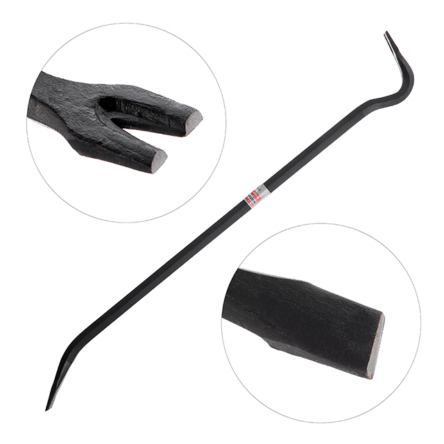 Виготовлений із надміцної загартованої інструментальної сталі для виконання складних демонтажних робіт. Кутовий цвяходер створює опору з високим важелем для зачеплення або підйому, а загострений кінець лома вклинюється у важкодоступні місця. Плоска поверхня цвяходера дозволяє вбивати лом за допомогою молотка.