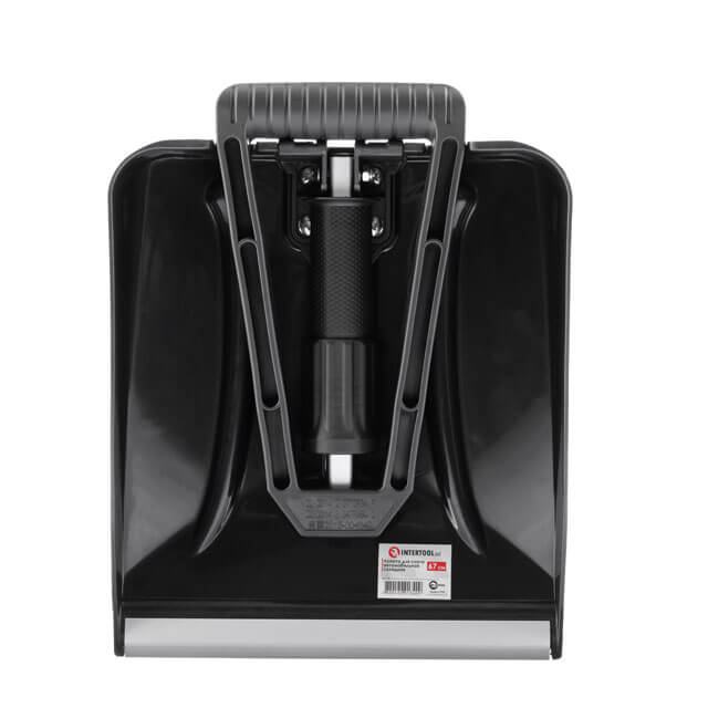 Лопата виготовлена з алюмінію та морозостійкого пластику, не втрачає своєї міцності за низьких температур. Алюмінієва накладка на лезі ковша не іржавіє та допомагає прибирати навіть сніг, що злежався, а також збивати лід. Для кращого ковзання ківш має гладку поверхню та досить великий об'єм: довжина 280 мм, ширина 240 мм, висота стінок до 40 мм. Держак з алюмінієвою основою, також посилена ребрами жорсткості та потовщеним пластиком.