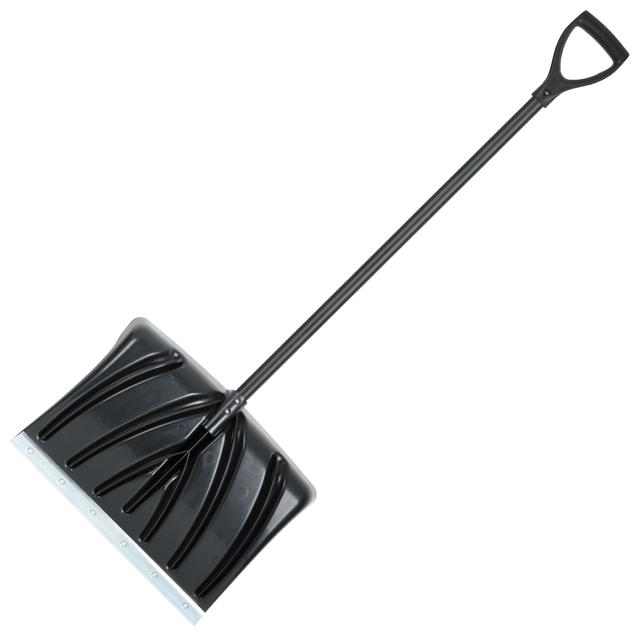 Снігоприбиральна лопата виготовлена з легкого пластику, держак посилений металом для більшої міцності та можливості роботи під великими навантаженнями. Діаметр ручки становить 27 мм, а стінки з металу завтовшки 6 мм.
