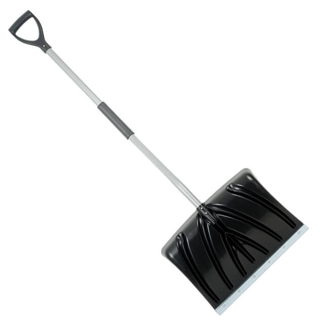 Снігоприбиральна лопата виготовлена з легкого пластику з металевою ручкою для більшої міцності та можливості роботи під великим навантаженням. Сталева кромка на лезі ковша лопати встановлена у спеціальний паз та міцно закріплена у ньому заклепками. Вона значно подовжує строк експлуатації лопати та захищає пластиковий ківш від сколів та тріщин.