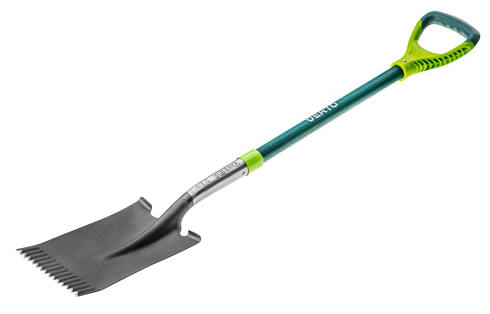 Лопата зачисна VERTO (арт. 15G004) загальною довжиною 1250 мм. Призначена переважно для садово-городніх і будівельних робіт. Багнет лопати виготовлений із високоякісної загартованої сталі, з тупим вістрям, зі спеціально зазубреною окрайкою, яка спрощує перекопку дернистої або кам’янистої землі. Держак зі спеціальною насічкою, виготовлений зі скловолокна, підвищує впевненість хвату. Двокомпонентна ручка з пластику зручно міститься у долоні, що підвищує комфорт праці інструментом. Металеве підсилення у місці, найбільш нараженим на пошкодження (місце поєднання держака з багнетом).