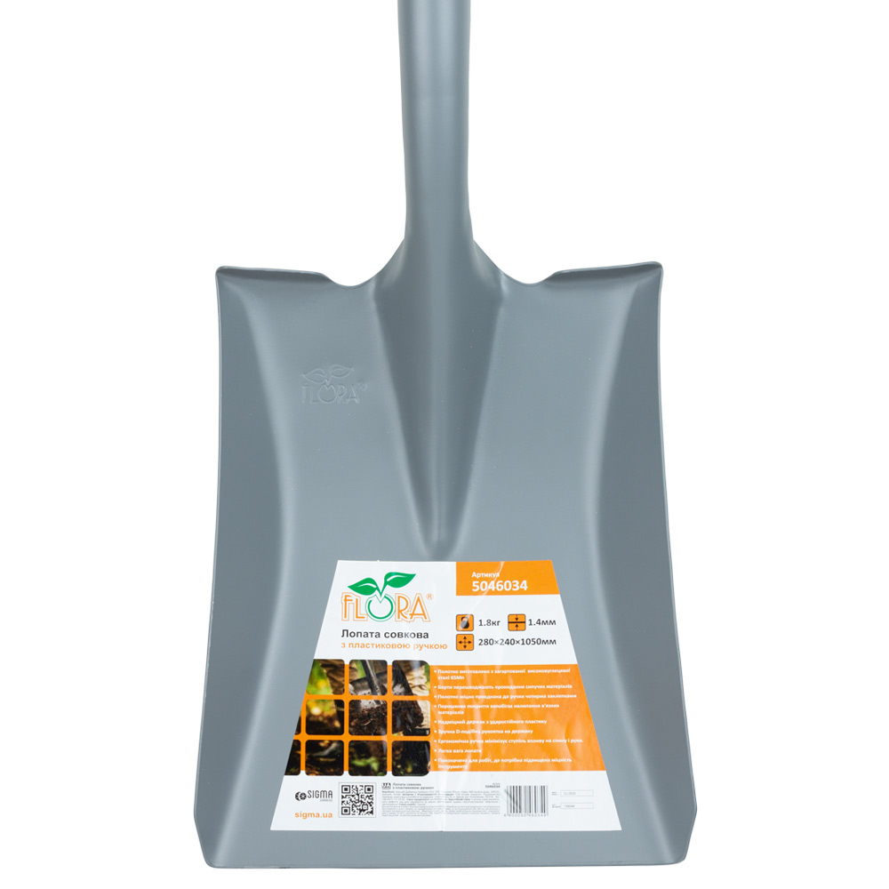 Лопата совкова із пластиковою ручкою 280×240×1050мм 1.8кг FLORA (5046034)