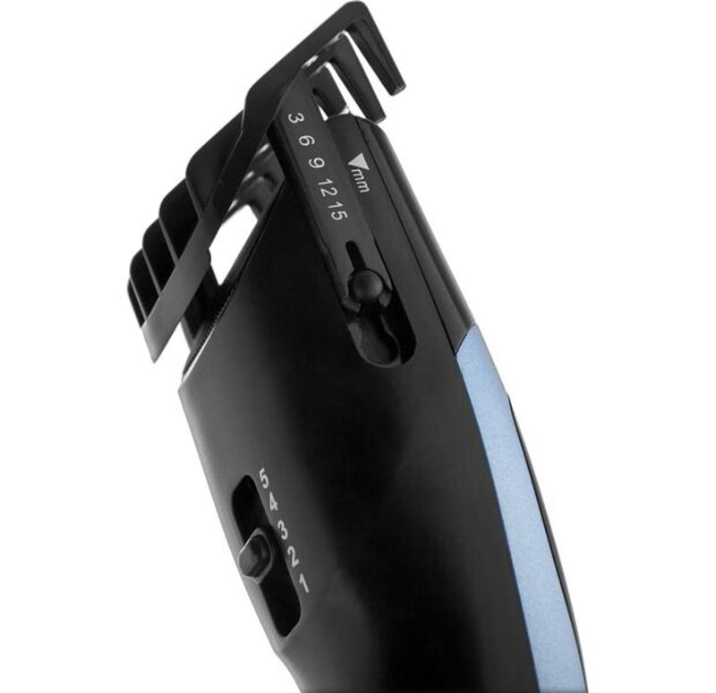 Представлена конфігурація використовує насадки, які дають можливість отримання зрізу достатньої довжини: 3/6/9/12/15 мм . Для створення багаторівневих стрижок на короткому волоссі і окремих операцій по догляду за ними цього буде достатньо.