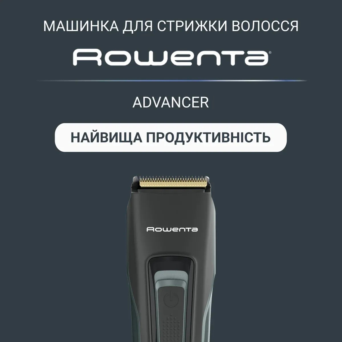 Ідеальна індивідуальна стрижка Створюйте свій стиль легко з професійною точністю разом із Rowenta Advancer. Леза з нержавіючої сталі з титановим покриттям ріжуть швидко та бездоганно, а широкий вибір налаштувань довжини допоможе досягти ідеального результату. Обирайте, комбінуйте, експериментуйте. Ваша стрижка ваші правила. ВИСОКА ЕФЕКТИВНІСТЬ Завжди ідеальний зріз – самозаточувальні леза з нержавіючої сталі з титановим покриттям залишаються гострими надовго, гарантуючи точне підстригання навіть густого та жорсткого волосся. ДОВГОВІЧНІ ЛЕЗА Надійні леза, які служать до 15 років* – не потребують заміни та забезпечують максимальний комфортпід час кожного використання. *За результатами внутрішніх тестів на міцність відповідно до протоколу Groupe SEB, 2020 Максимальна точність Індивідуальне налаштування для будь-якого стилю: 2 регульовані насадки для волосся – 29 варіантів довжини (0.5 – 30 мм) з точністю до 1 мм. Ідеальна ефективність Регульовані насадки для волосся в поєднанні з технологією самозаточувальних лез забезпечують бездоганний зріз у кожному русі та довготривалу продуктивність без втрати якості. ДОВГОТРИВАЛА АВТОНОМНА РОБОТА Літій-іонний акумулятор забезпечує до 120 хвилин* безперервної роботи – це майже 2 місяці використання без підзарядки, а також функцію швидкого заряджання за 90 хвилин. *За регулярного використання протягом 5 хвилин 3 рази на тиждень.