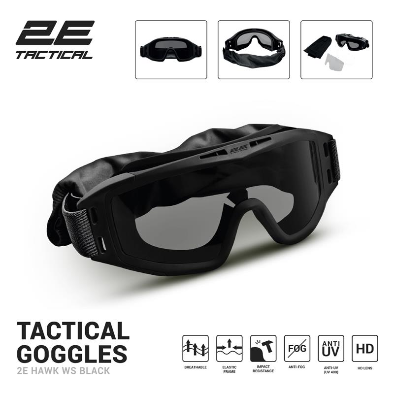 Тактична маска 2Е Hawk WS Black призначена для захисту очей від механічних ушкоджень насамперед в умовах бойових дій. Крім того, стане в пригоді під час гри в пейнтбол, стрільби з пневматичної гвинтівки, також буде корисний рибалкам, мисливцям і мандрівникам, адже допоможе захистити очі від гілок, кущів, особливо необхідний за умов сильного вітру чи пилових і піщаних бурь.
