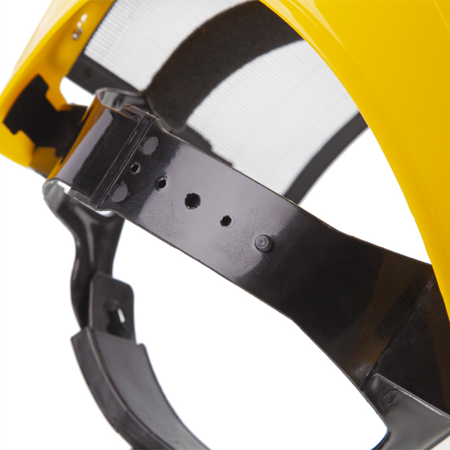 Основа маски виготовлена з міцного полівінілхлориду, екран з металевою сіткою ефективно захищає очі та обличчя від механічних пошкоджень, що актуально під час виконання садових робіт з різним інструментом, оскільки він витримує удари дрібних твердих частинок, трави, стружки тощо.