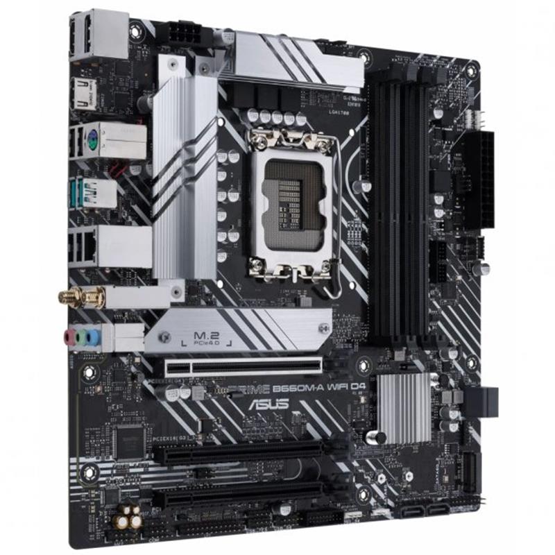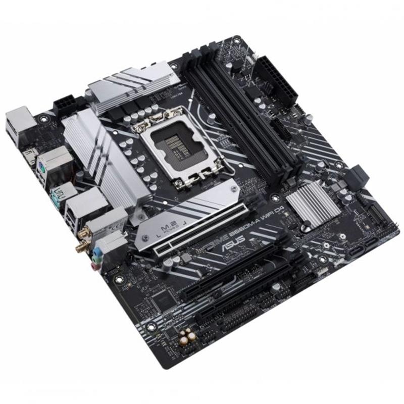 Материнські плати ASUS серії Prime спеціально розроблені для розкриття всього потенціалу процесорів Intel 12 покоління. Маючи надійну конструкцію живлення, комплексні рішення для охолодження та інтелектуальні можливості налаштування, Prime B660 надає користувачам і збирачам ПК ряд варіантів налаштування продуктивності за допомогою інтуїтивно зрозумілих функцій програмного забезпечення та вбудованого ПЗ. ASUS PRIME B660M-A WIFI D4 пропонує елегантний футуристичний корпус із чорно-білим оздобленням, елементами дизайну, натхненими космічним кораблем, металевою табличкою з назвою та кришкою друкованої плати.