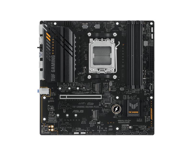 ASUS TUF GAMING A620M-PLUS - це всі основні елементи процесорів AMD Ryzen 7000-ї серії, які поєднуються з ігровими можливостями та перевіреною довговічністю. Завдяки компонентам військового класу, модернізованому рішенню живлення та комплексній системі охолодження ця материнська плата перевершує всі очікування, забезпечуючи надійну та стабільну продуктивність для марафонських ігор. Материнські плати TUF GAMING також проходять ретельне тестування на витривалість, щоб гарантувати, що вони зможуть витримати умови, в яких інші можуть вийти з ладу. З естетичного погляду, у цій моделі використовують строгі чорні кольори та геометричні елементи дизайну, що відображають надійність і стабільність, які визначають серію TUF GAMING.
