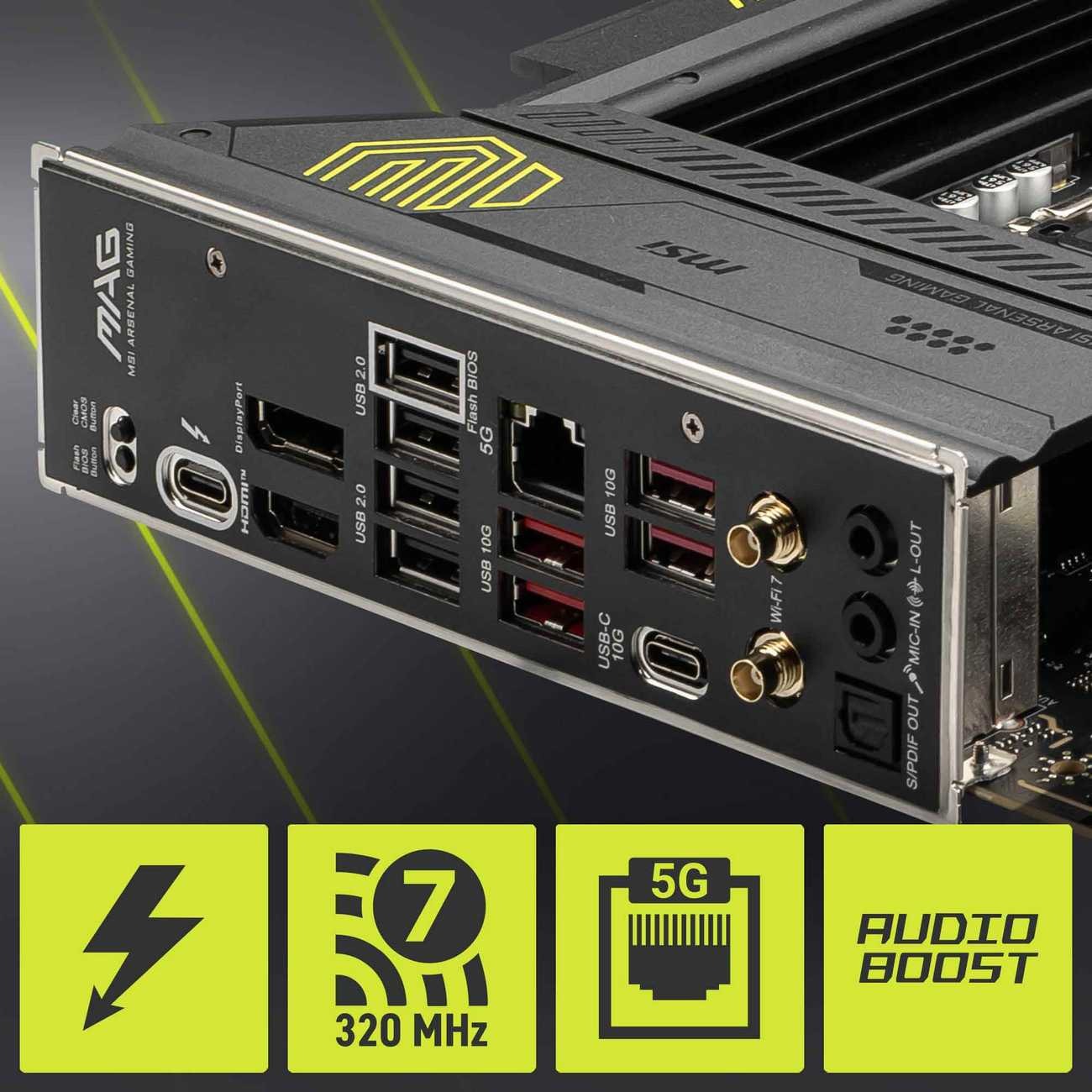 MAG B860 TOMAHAWK WIFI - це материнська плата формату ATX для процесорів Intel Core Ultra (Серія 2). Вона побудована на базі новітнього чипсета Intel B860 із підтримкою PCIe 5.0, 5G LAN, Thunderbolt 4, Wi-Fi 7, DDR5, що забезпечує сумісність із великою кількістю апаратного забезпечення.