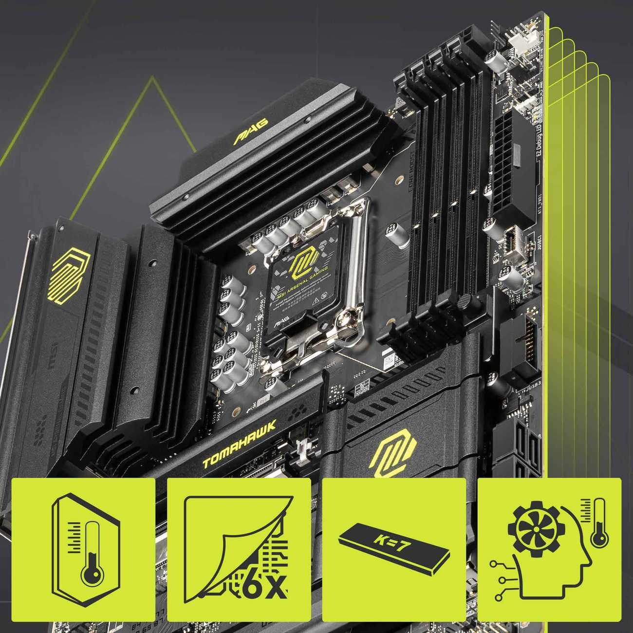 Frozr Guard: Збільшений радіатор, термопрокладки для MOSFET 7 Вт/мК, додаткові термопрокладки для дроселів та EZ M.2 Shield Frozr II для покращеного розсіювання тепла.