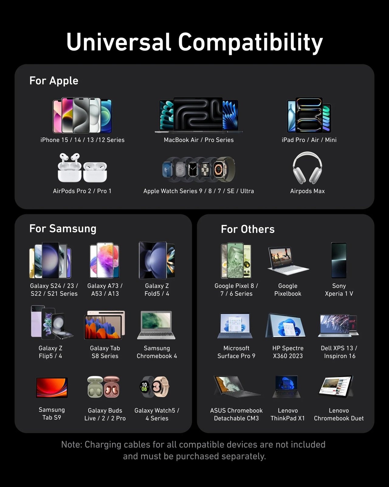 Мережевий зарядний пристрій Anker PowerPort GaNPrime 100W 2xUSB Type-C, USB Type-A Silver (A2688341)