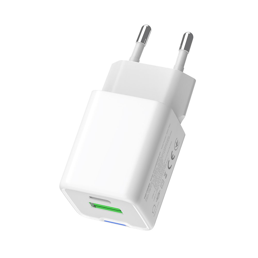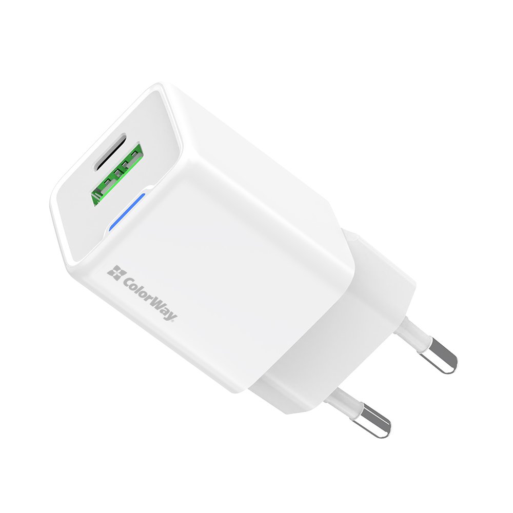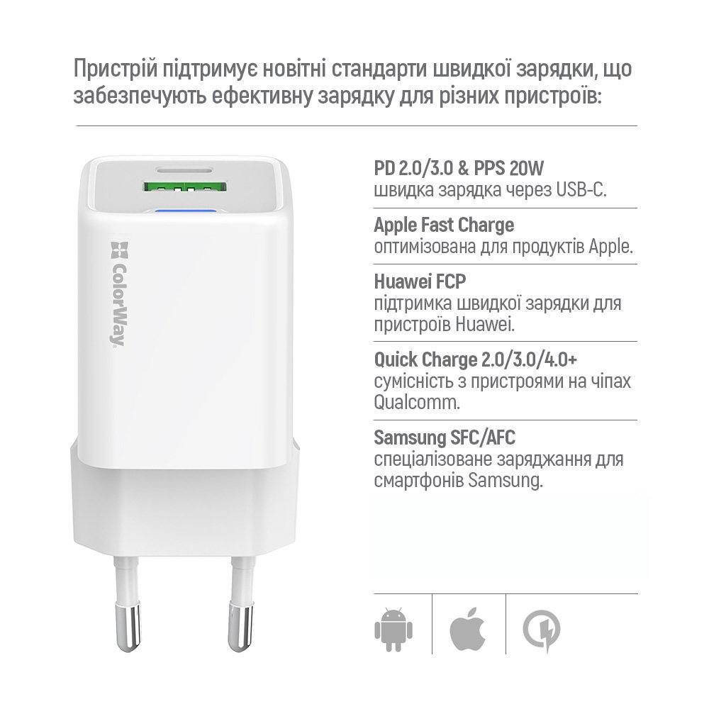 Мережевий зарядний пристрій ColorWay GaN Mini 20W PD Port PPS USB (Type-C PD + USB QC4.0) White (CW-CHS062PD-WT)