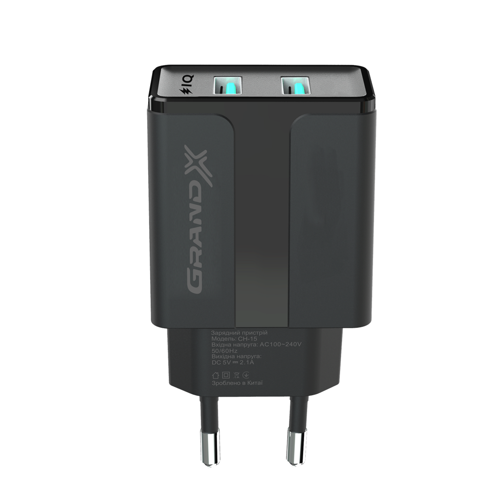 Мережевий зарядний пристрій Grand-X CH-15B (2xUSB 2.4A) Black