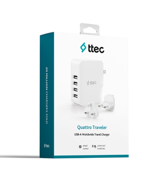 Мережевий зарядний пристрій Ttec Quattro Traveler 4хUSB 5.1A/25Вт White (2SC02BUK)