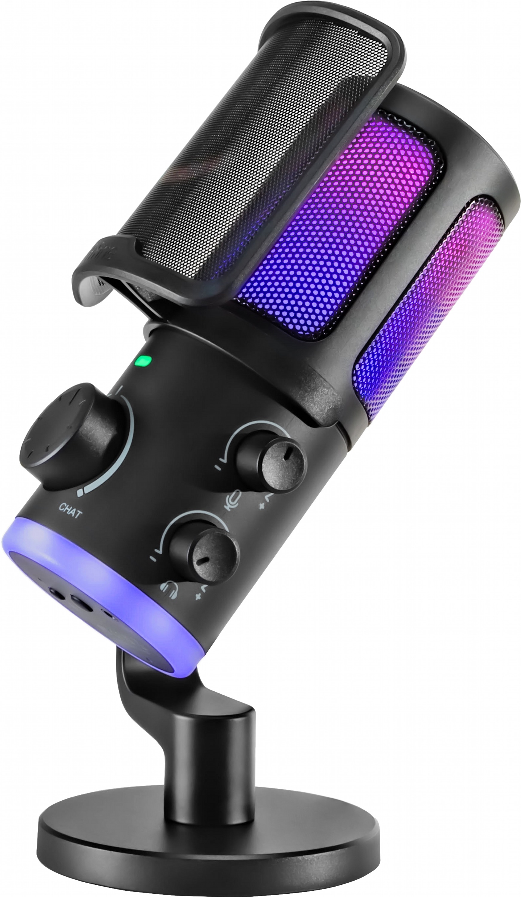 Кнопка гучності навушників, дозволяє легко регулювати рівень звуку під час моніторингу запису у реальному часі. Копка зміни режимів RGB підсвічування, забезпечує його легке регулювання відповідно до вашого настрою.