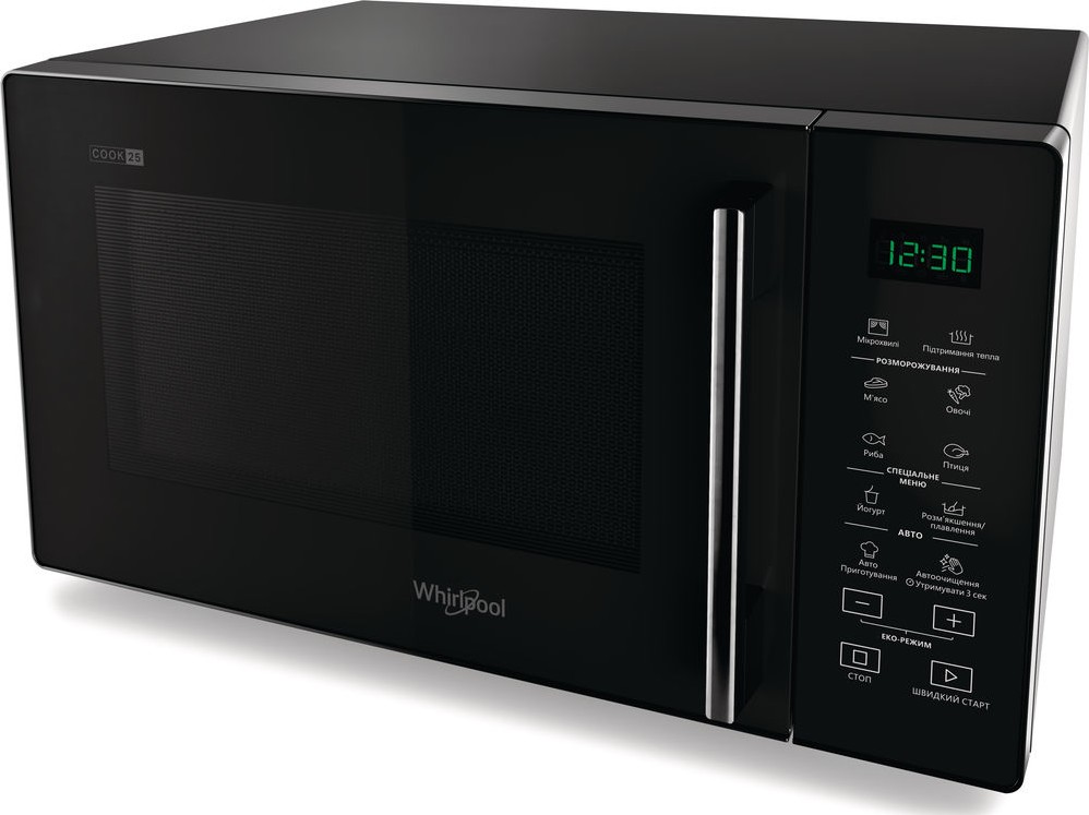 Мікрохвильова піч Whirlpool соло MWP 251 B потужністю 900 Вт. Аутентичні елементи дизайну, простий у користуванні інтерфейс, ергономічні елементи управління. Функція JetStart прискорює нагрів до максимуму за 30 секунд, забезпечуючи ідеальний температурний режим для розігріву їжі з високим вмістом води. Виберіть один зі 100 попередньо запрограмованих рецептів, і мікрохвильова піч автоматично налаштує температуру і час для забезпечення ідеальних результатів.