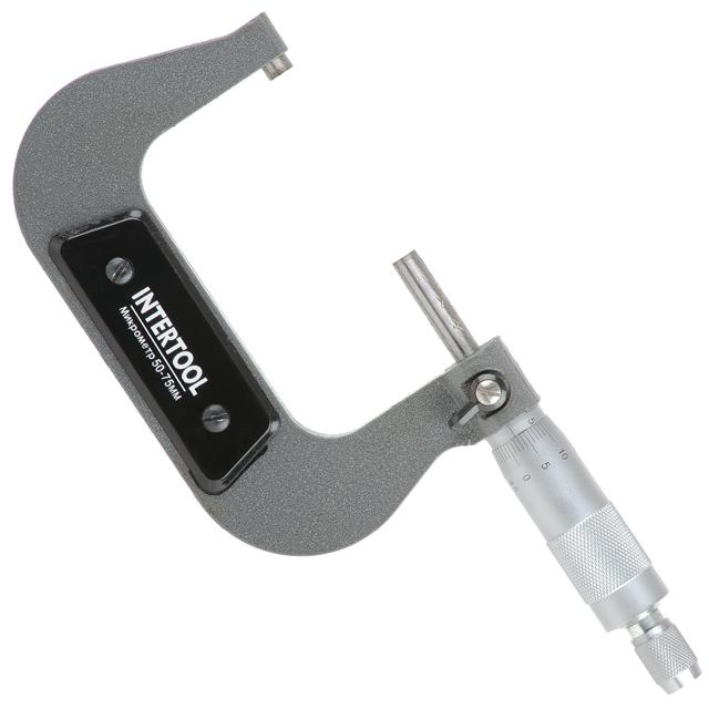 Мікрометр INTERTOOL – вимірювальний інструмент, який використовується для високоточного вимірювання лінійних розмірів невеликих предметів, контактним методом із мінімальною похибкою. Цей прилад дозволяє визначити розміри деталей з точністю ±0,004 мм. Застосовується для механічної обробки деталей, точного складання вузлів та механізмів, налаштування роботи промислового обладнання тощо.