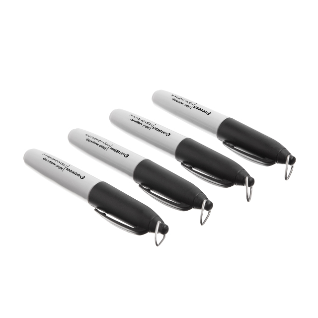 Залишають помітний, яскравий слід, а чорнила не роз'їдають поверхню, на яку нанесено напис. Повісьте маркер за верхнє кільце до ключів, як брелок, і він завжди у вас під рукою.
