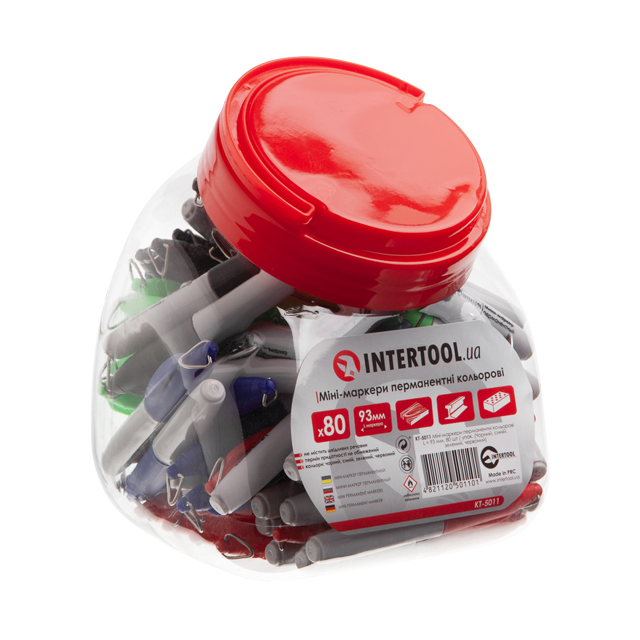 Міні-маркери перманентні, кольорові (чорний, синій, зелений, червоний), довжина: 93 мм, уп. 80 шт.