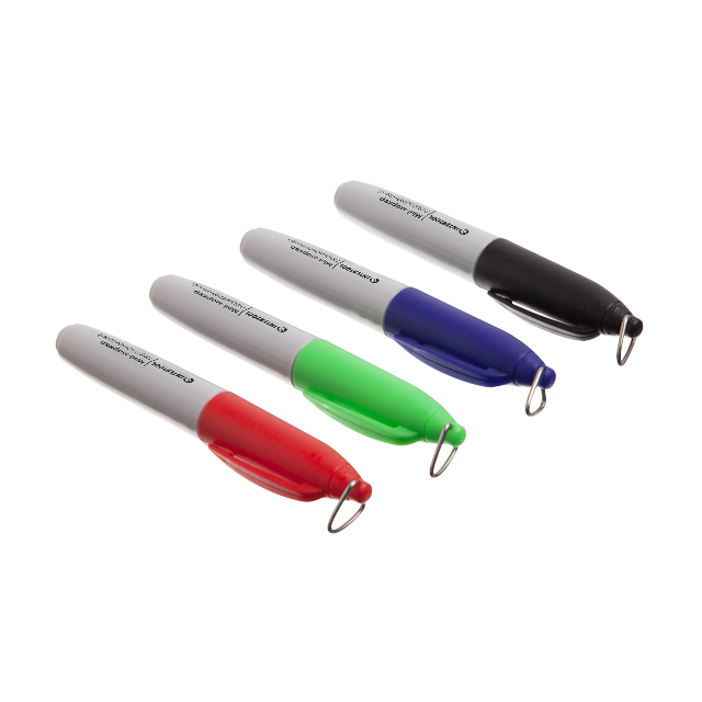 Залишають помітний, яскравий слід, а чорнила не роз'їдають поверхню, на яку нанесено напис. Повісьте маркер за верхнє кільце до ключів, як брелок, і він завжди у вас під рукою.