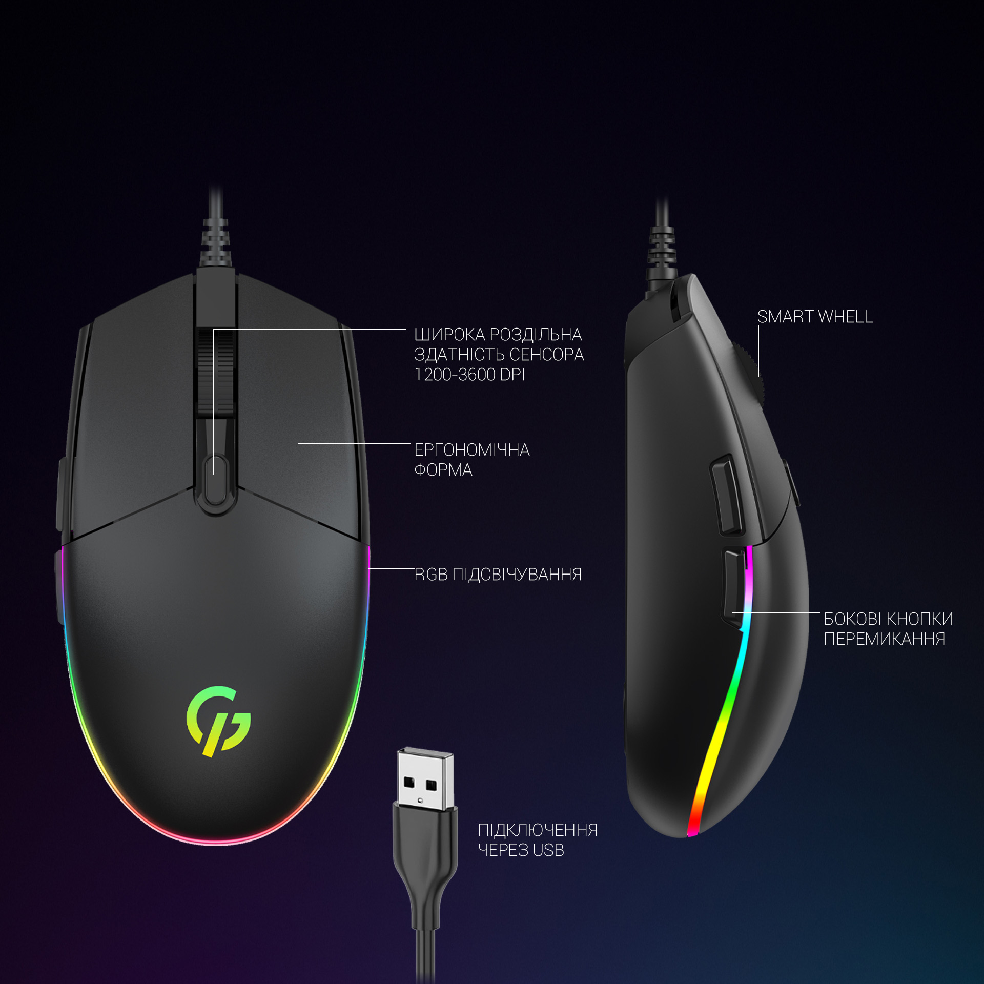 Ігрова миша GM220 має яскраве RGB-підсвічування, яке можна налаштовувати на ваш смак. Вона створює чудову атмосферу під час гри та надихає вас на нові ігрові звершення. Мишка має чотири режими регулювання роздільної здатності (DPI): 1200, 1800, 2400 та 3600 DPI. Це дозволяє вам вільно перемикатися між цими значеннями прямо під час гри, щоб вибрати оптимальну роздільну здатність для вашого стилю гри. Щоб забезпечити комфорт під час тривалого використання мишка має ергономічний дизайн. Вона ідеально прилягає до долоні, завдяки чому ви можете грати протягом багато часу, не відчуваючи втоми.