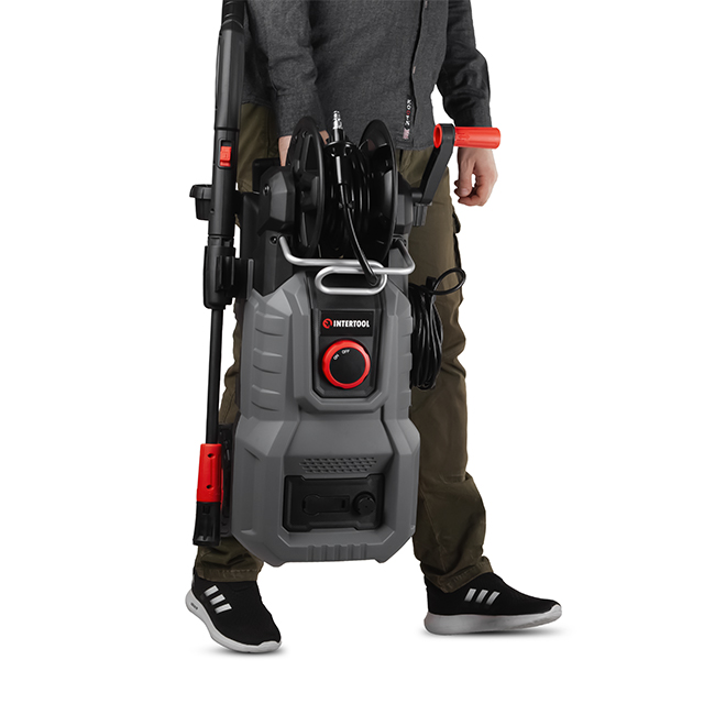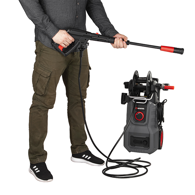 Мийка високого тиску INTERTOOL DT-1518 у сучасному дизайні та повнорозмірному корпусі швидко та ефективно впорається із очищенням поверхонь від будь-яких видів забруднень. Стане в пригоді для очищення авто, мотоциклів, велосипедів, терас, садових меблів, присадибних ділянок тощо.