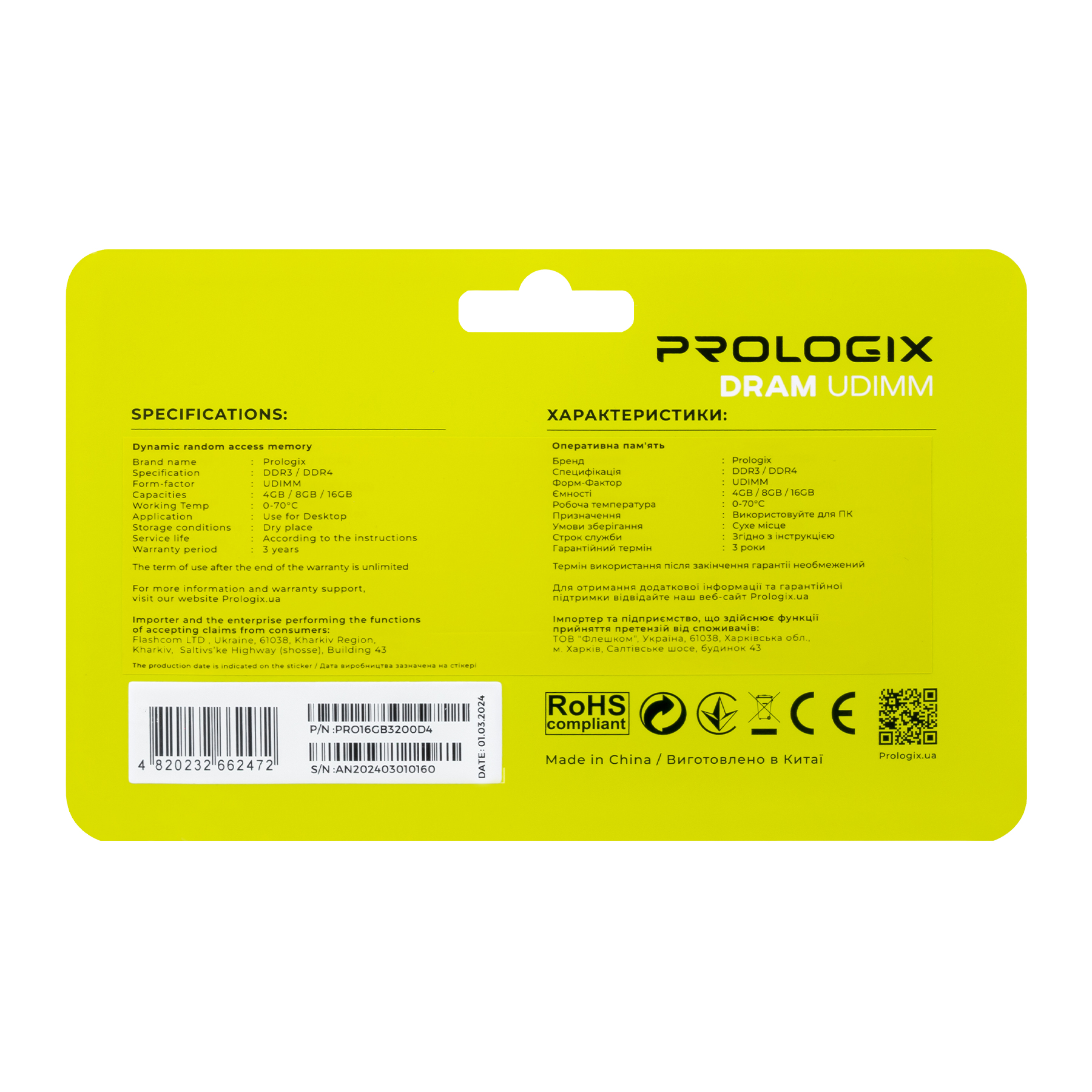 Вони також здатні підвищити продуктивність як ігрової, так і робочої систем. Модулі оперативної пам’яті Prologix надійні та довговічні, адже побудовані на основі високоякісних компонентів.