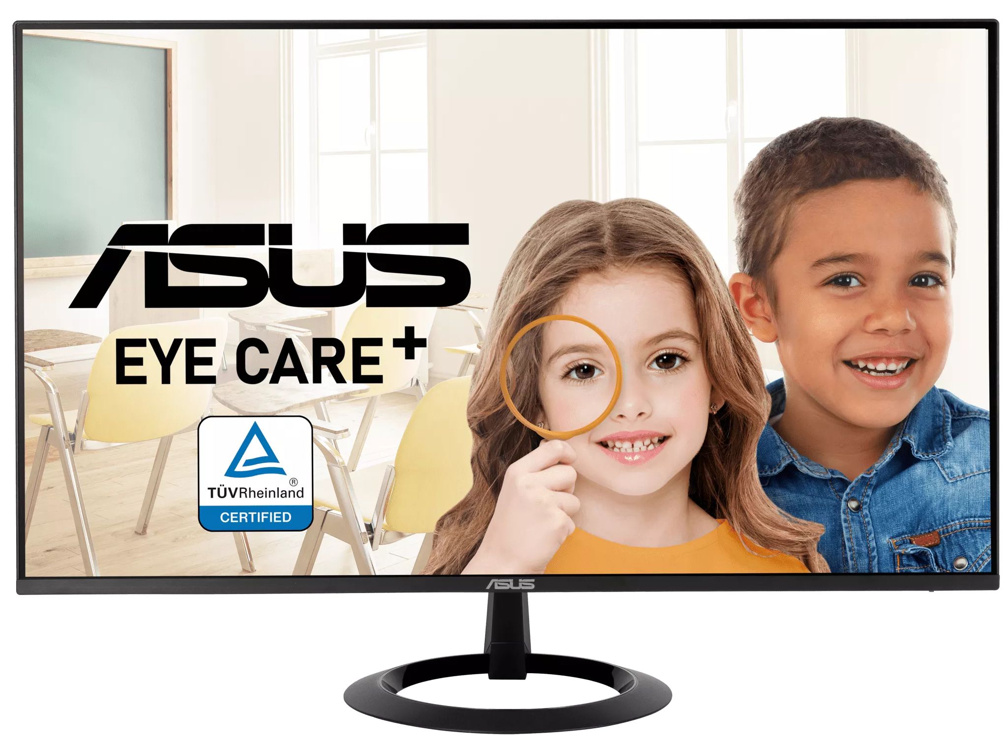 Ігровий монітор ASUS VZ27EHF Eye Care оснащений 27-дюймовою IPS-панеллю з роздільною здатністю Full HD (1920 x 1080), що забезпечує ультратонкий профіль, товщина якого становить лише 6,5 мм у найтоншій частині, і яскраве зображення. З високою частотою оновлення 100 Гц і технологією Adaptive-Sync для усунення розривів екрана та переривчастої частоти кадрів для більш плавної роботи, ніж будь-коли. Він також має сертифіковані TUV Rheinland технології Flicker-free і Low Blue Light, що забезпечують комфортне перегляд.