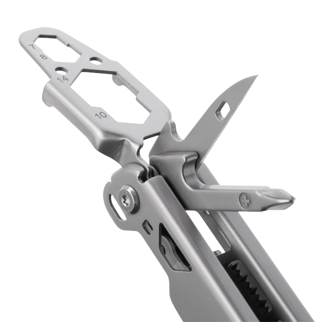 Мультиінструмент має 12 різноманітних інструментів, які розміщуються в легкому і компактному корпусі. Всі компоненти виготовлені зі сталі 440А, стійкої до появи корозії, яка має відмінні показники зносостійкості. Ніж мультитула має заводське професійне заточування. Кусачки інструмента оснащені змінними губками, які за необхідності можна замінити.