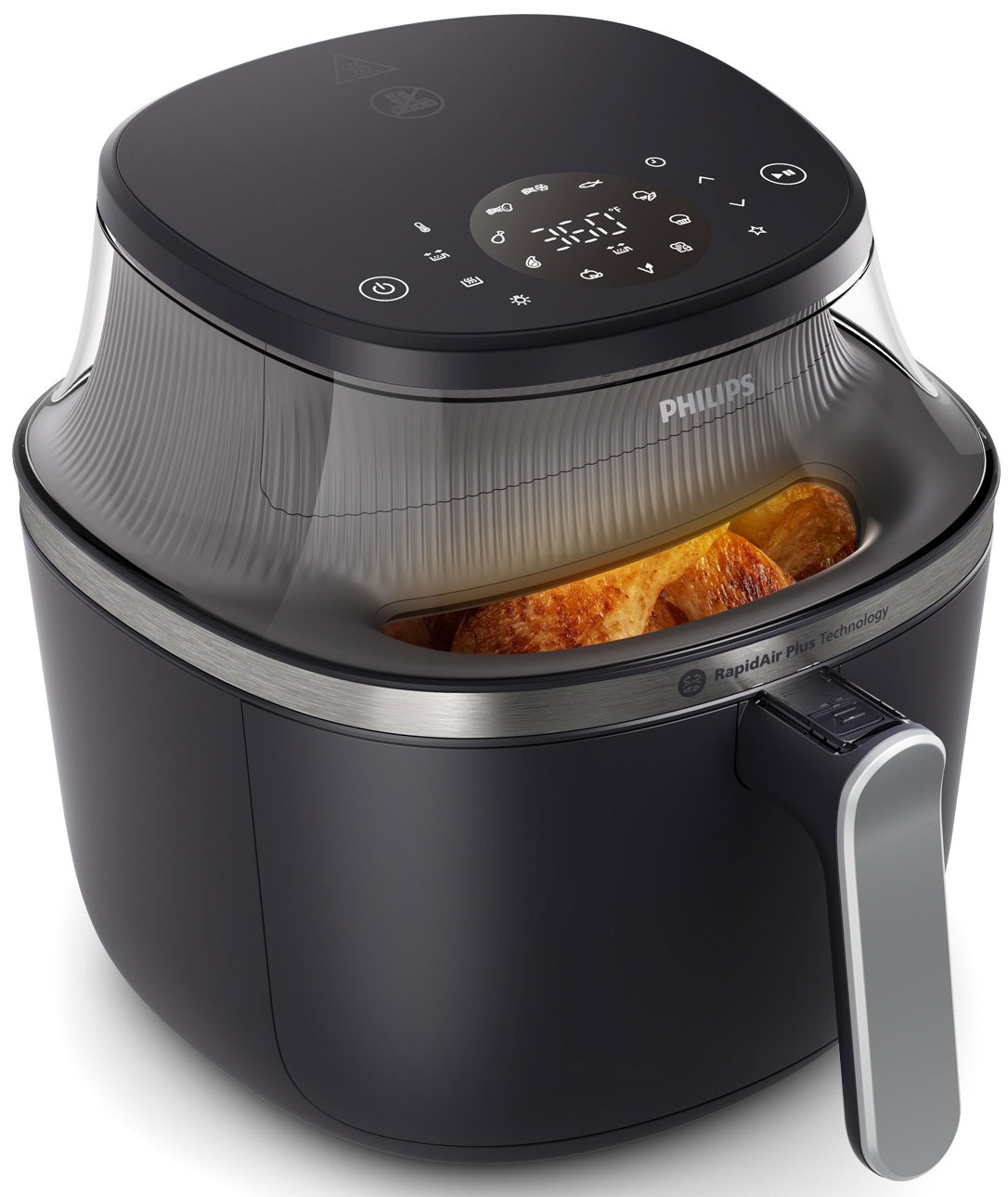 Запатентована технологія RapidAir Plus з унікальним дизайном у формі зірки забезпечує циркуляцію гарячого повітря навколо та крізь їжу з швидшим повітряним потоком, забезпечуючи рівномірне приготування всередині та зовні для смачних домашніх страв за 30% менше часу