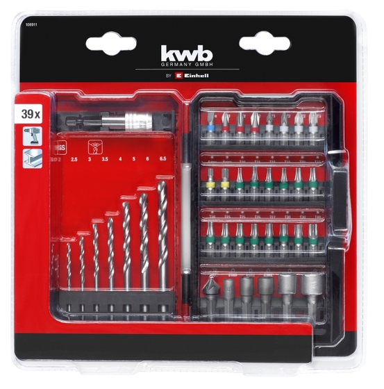 Набір біт і свердл по металу HSS Einhell 39шт L-Box KWB 0.43кг